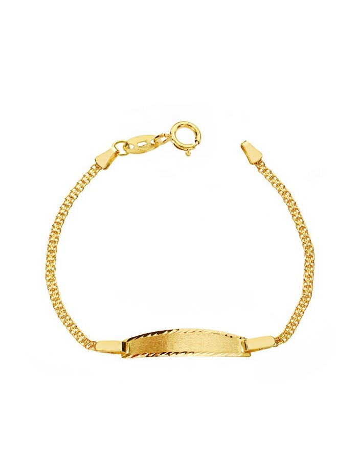 Esclava para bebé de Oro Amarillo 18K y con acabado en Brillo de la marca Joyas Armaan con cierre de reasa. La longitud de la Esclava es de 12 cm y un peso aproximado de 1,20 grs.