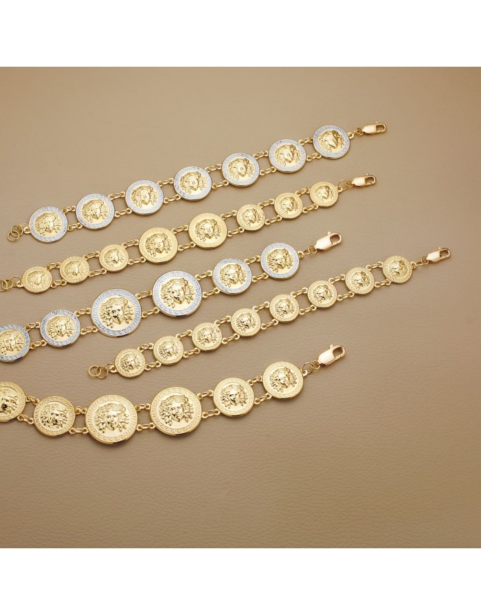 Pulsera Mujer Medusa Monedas en Oro Amarillo 18KT -20,5 cm