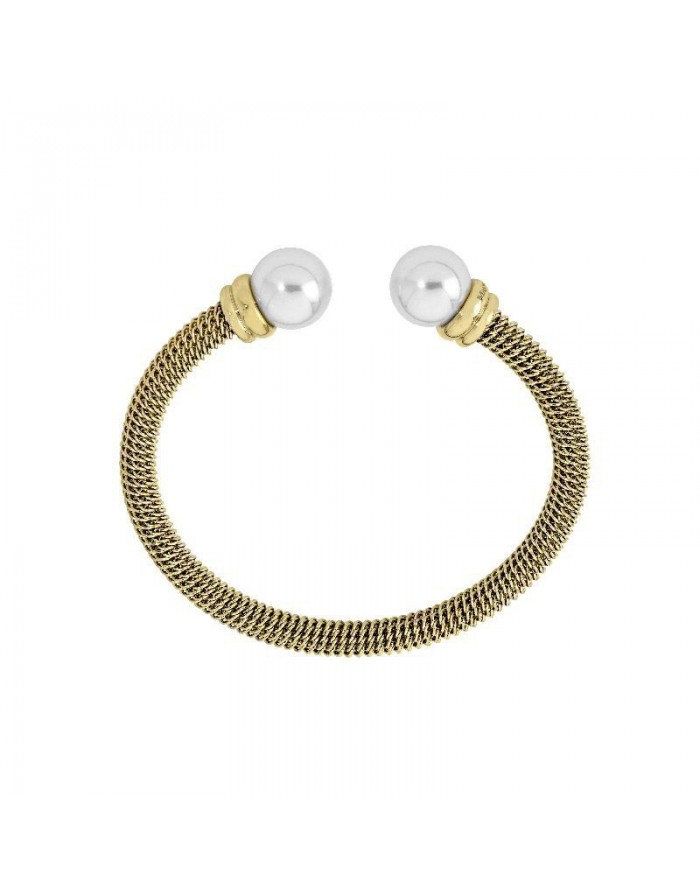 Pulsera con perlas para mujer de acero y con acabado en Baño de oro de la marca Majorica con cierre ajustable.