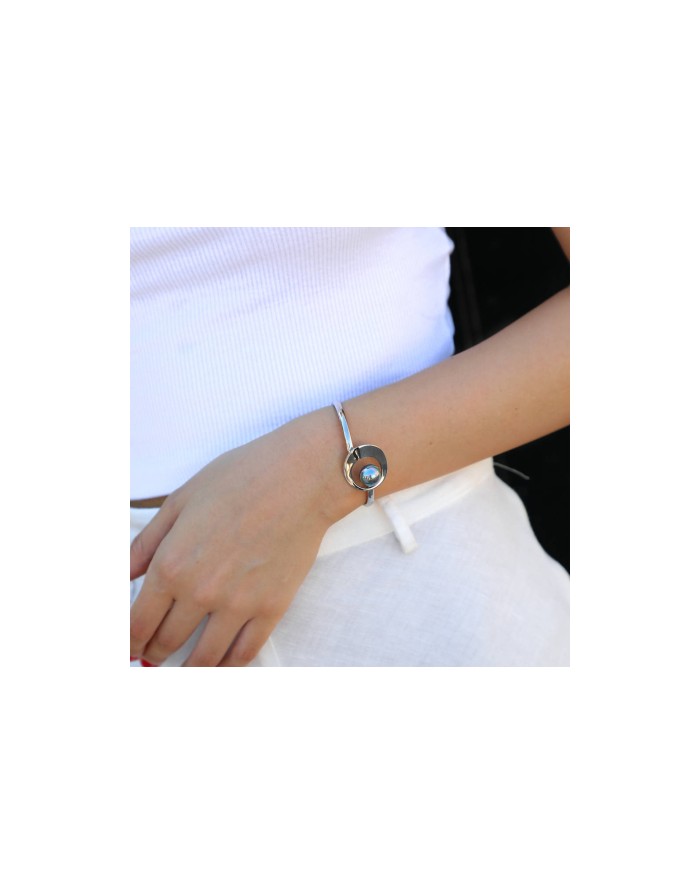 Pulsera con perlas para mujer de acero con baño de rodio de la marca Majorica.