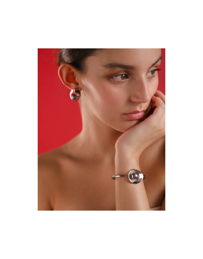 Esta pulsera está hecha con perla redonda de color gris y un diámetro de 12 mm.