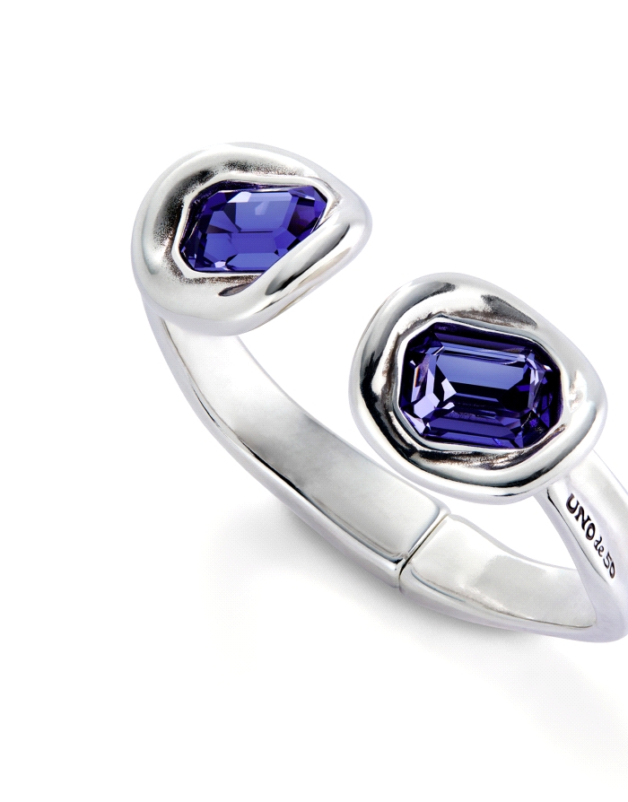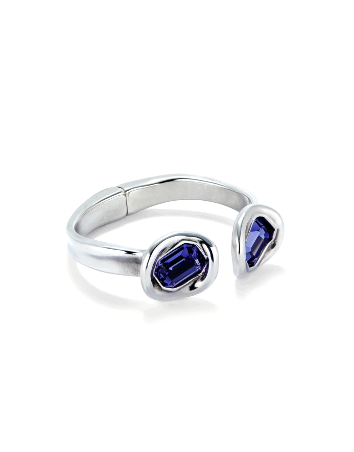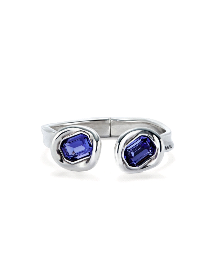 Pulsera rígida bañada en plata de ley y dos cristales morados