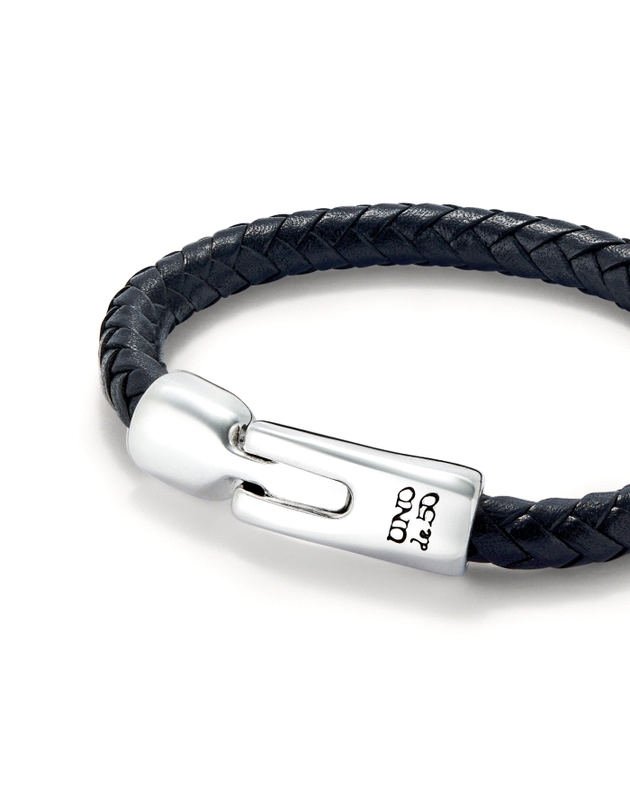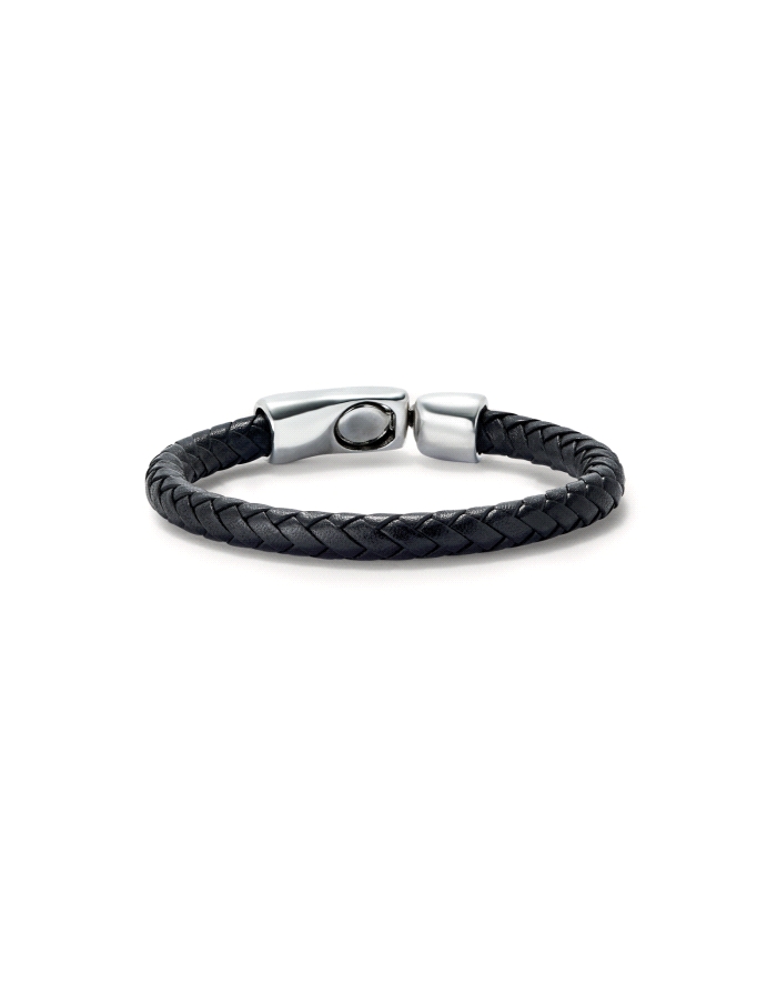 Pulsera de cuero tubular, trenzada con cierre bañado en plata de ley