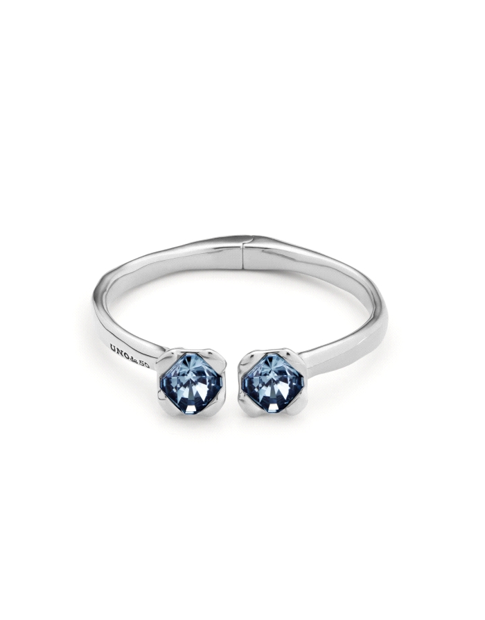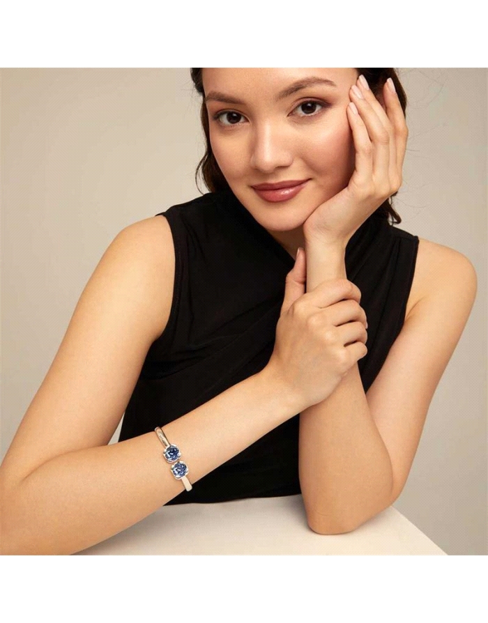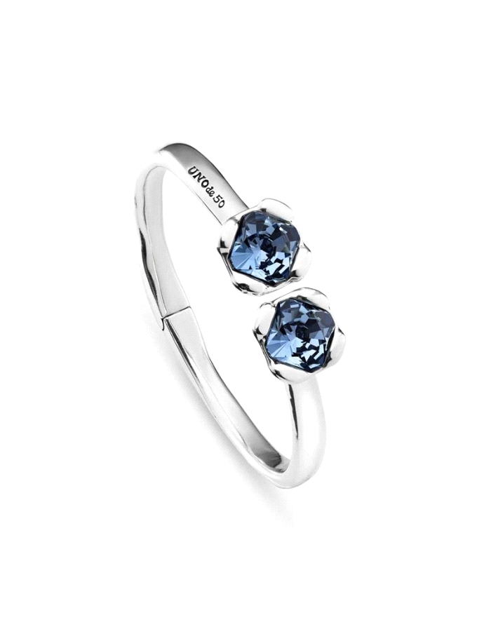 Pulsera rígida bañada en plata de ley, con muelle interior y dos cristales azules