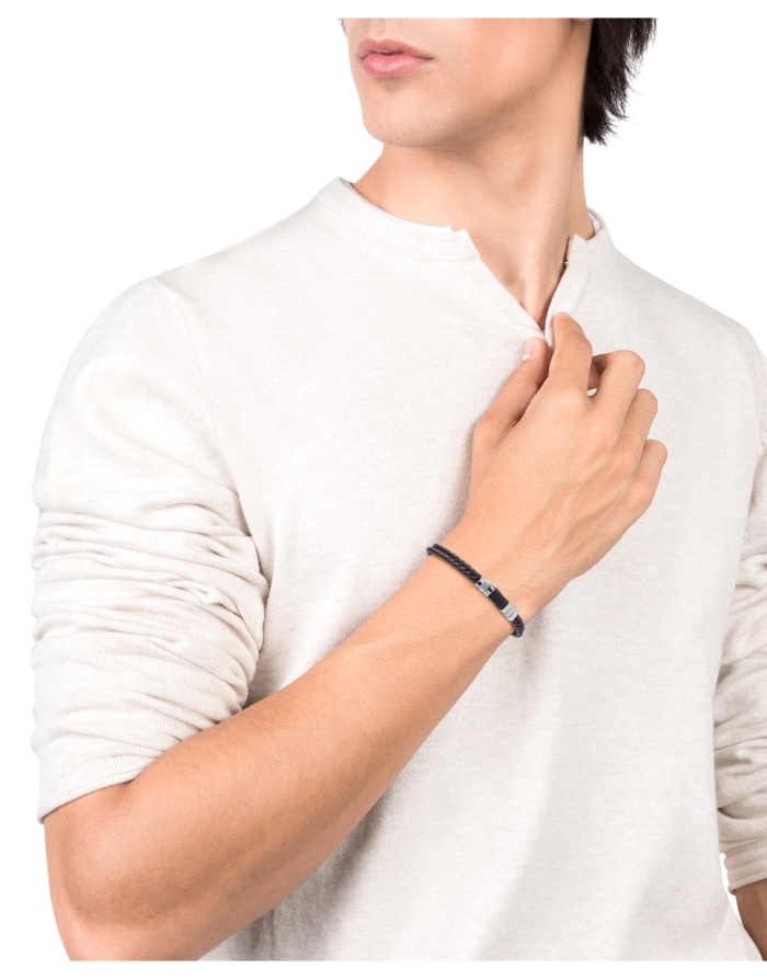 Pulsera de hombre Air de piel doble negra trenzada y acero