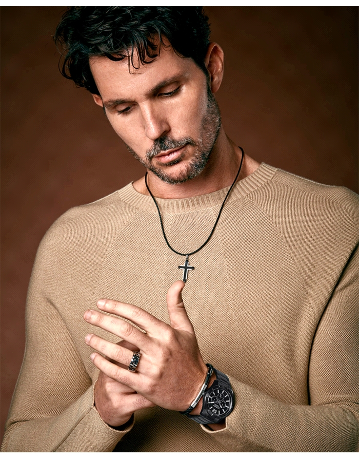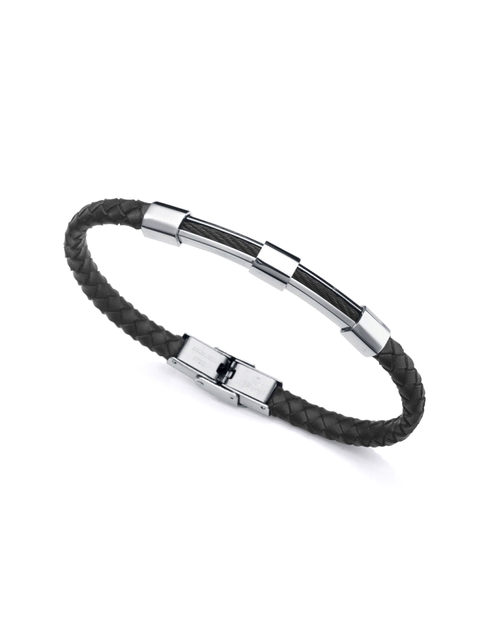Pulsera Beat de acero con piel negra y cable Ip negro