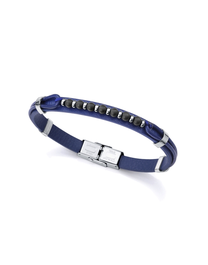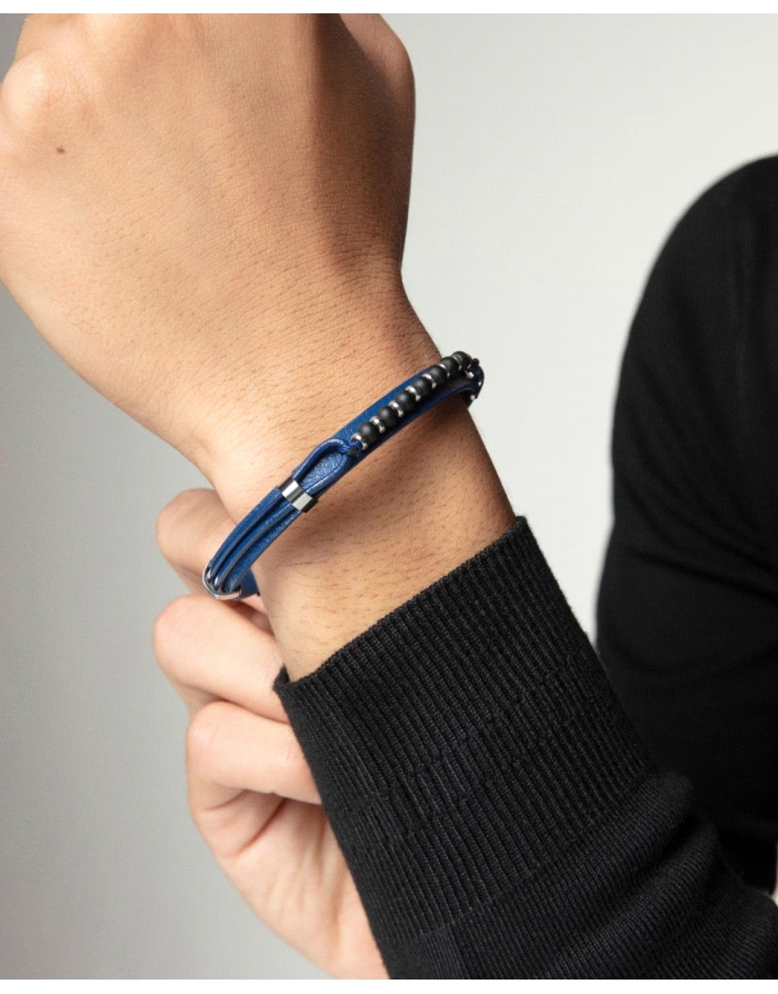 Pulsera de hombre de acero y piel azul