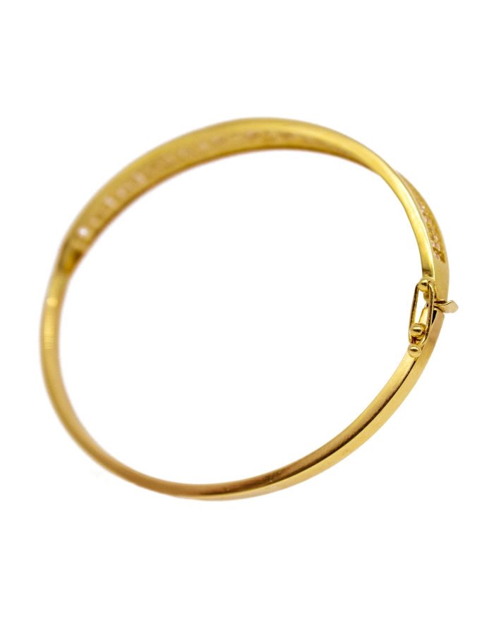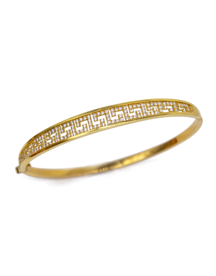 Pulsera Rígida Diseño Greca con Circonitas de Oro 18K