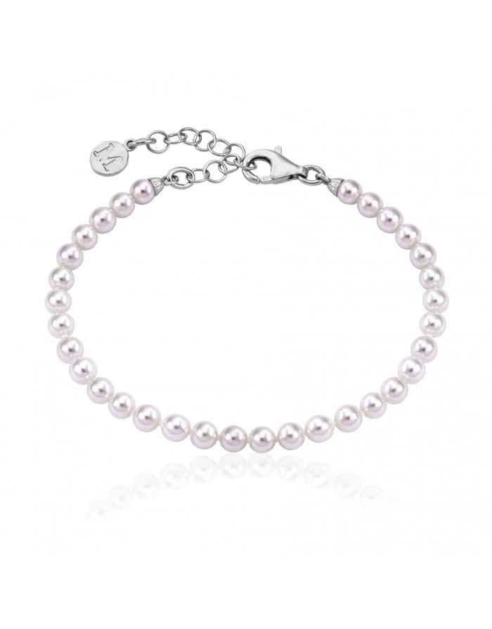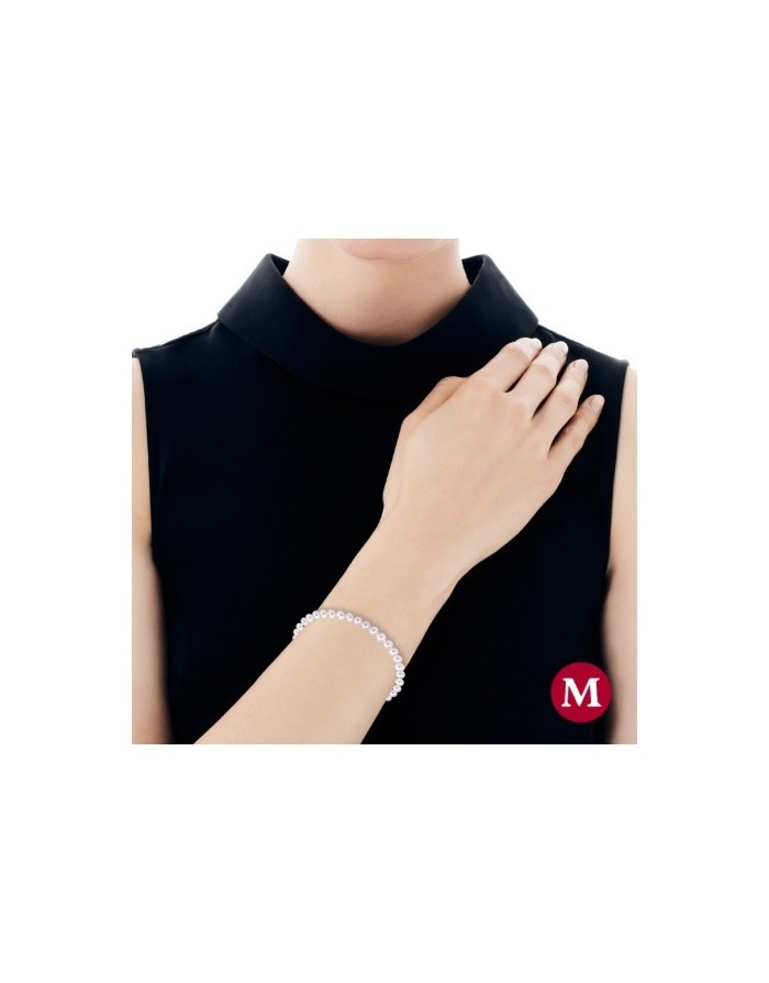 Pulsera con perlas para mujer de Plata de ley y con acabado en Rodio de la marca Majorica con cierre de mosquetón. La longitud de la Pulsera con perlas es de de 16 a 19 cm.