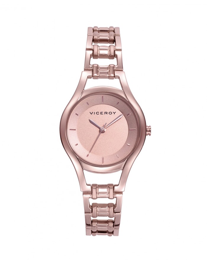 Reloj tres agujas de acero Ip rosa y esfera rosa