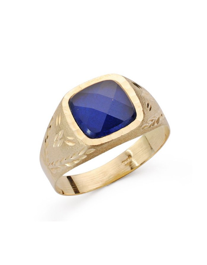 Sello Caballero en Oro de 18Kt con Piedra Azul y Tallado - 9 x 9mm