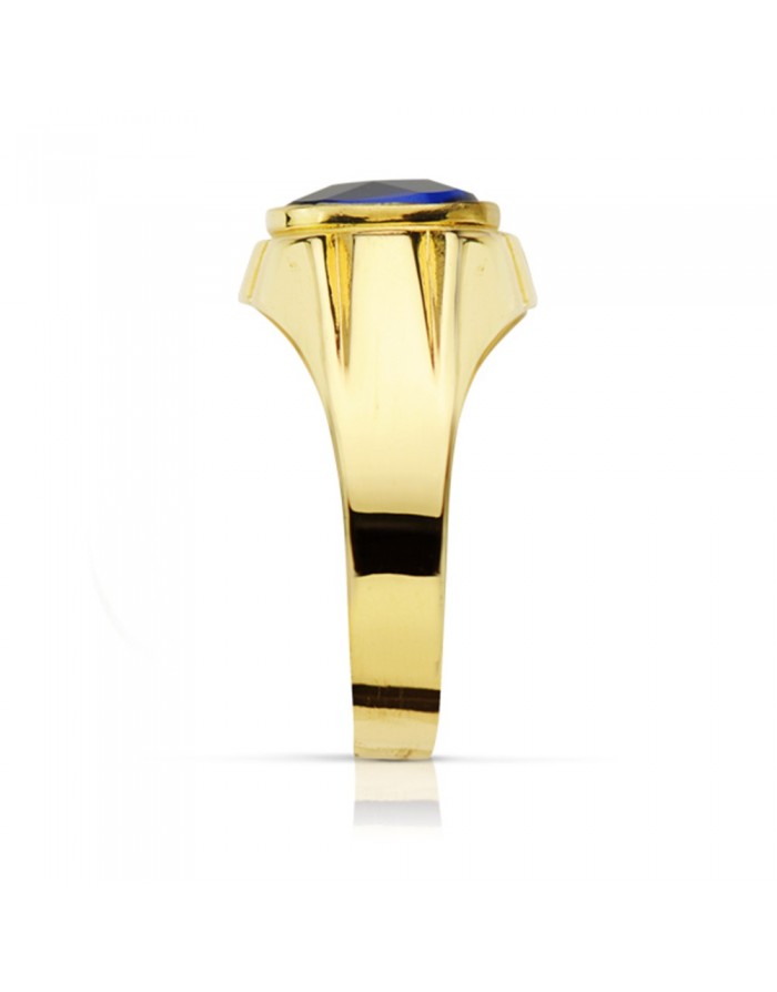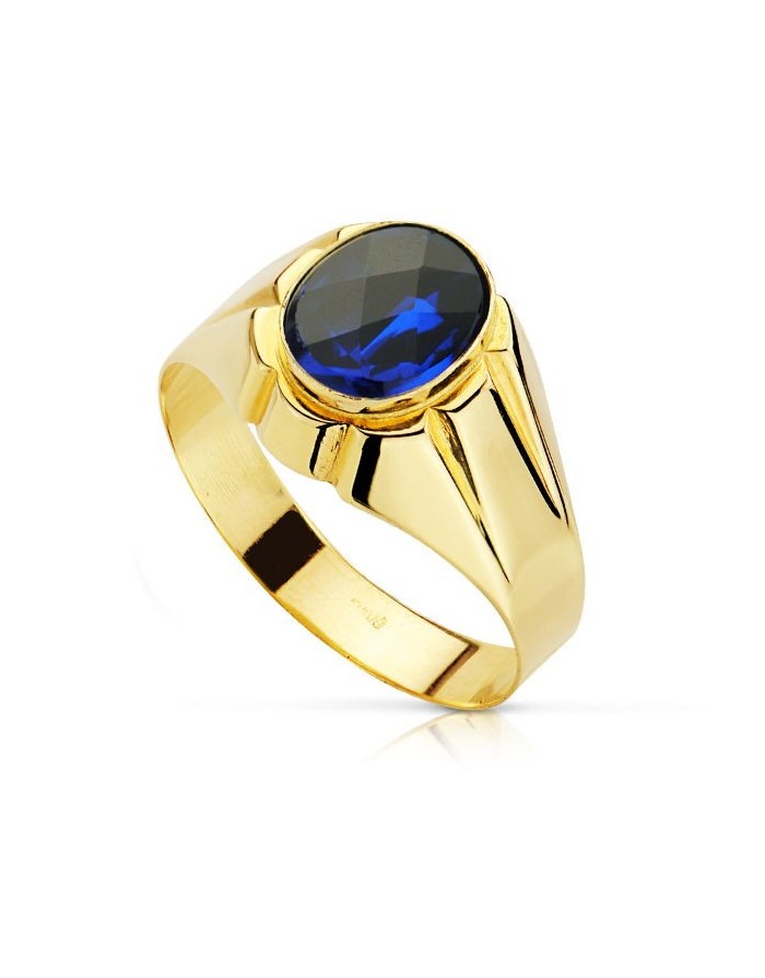 Sello Oval Tallado con piedra Spinel azul en Oro de 18Kt -10 x 8mm