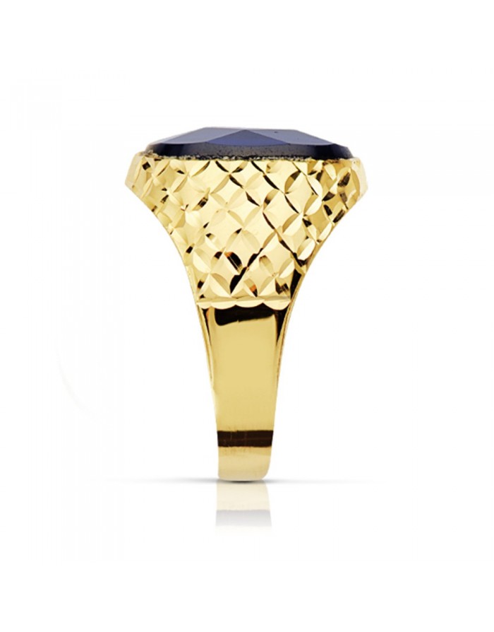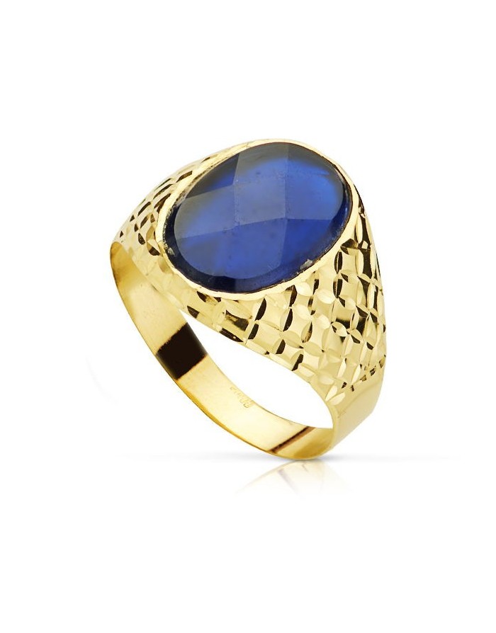 Sello Caballero oval con piedra Spinel azul Tallado Oro de 18Kt -14 x 10mm