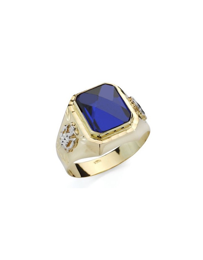 Sello Caballero con piedra Espinela color zafiro en Oro de 18Kt