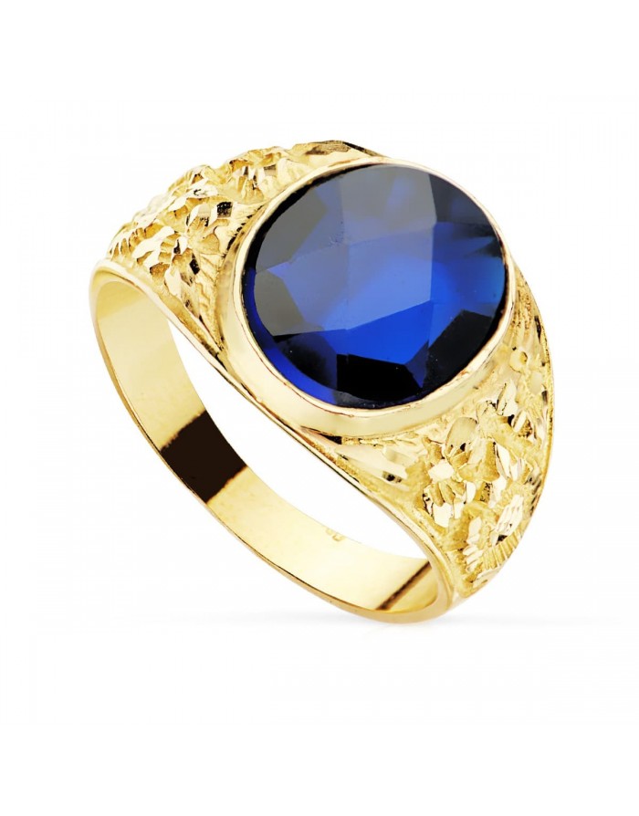 Sello de Oro Amarillo 18KT de la marca Joyas Armaan . La piedra tiene una talla oval.