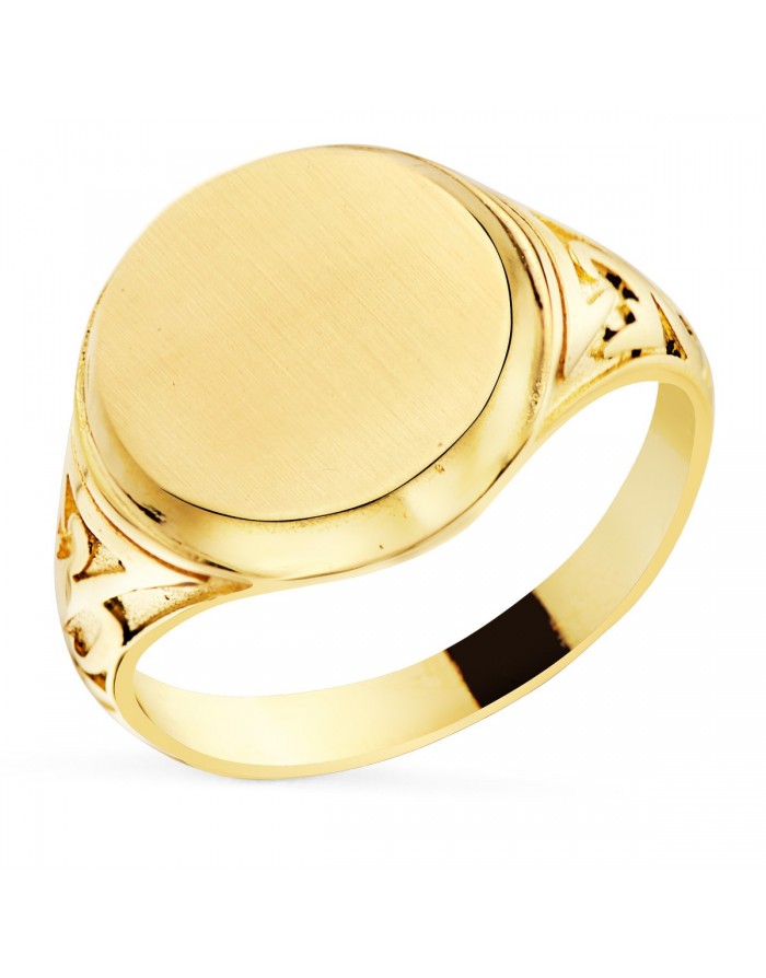 Sello Tallado y Matizado con Frontal redondo de 12mm en Oro de 18Kt