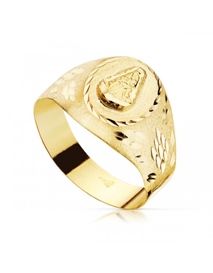 Sello Virgen del Rocío en Relieve Tallados en Oro de 18KT -10 x 9mm