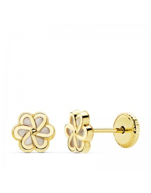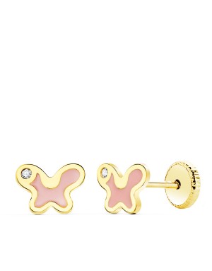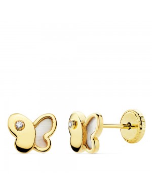 Earrings for the youngest members of the family made in 18 carat gold. We have the classic button earrings for newborns, two-tone earrings with zircons and mother-of-pearl, which give an innovative and fun look to the jewellery. You will also find variants with the most original shapes such as stars, rings, butterflies or the now legendary enamelled ladybird earrings. Give gold earrings for baby, first and second wear earrings. Comfort, security and guarantee, that with the necessary care, they will be earrings for life.