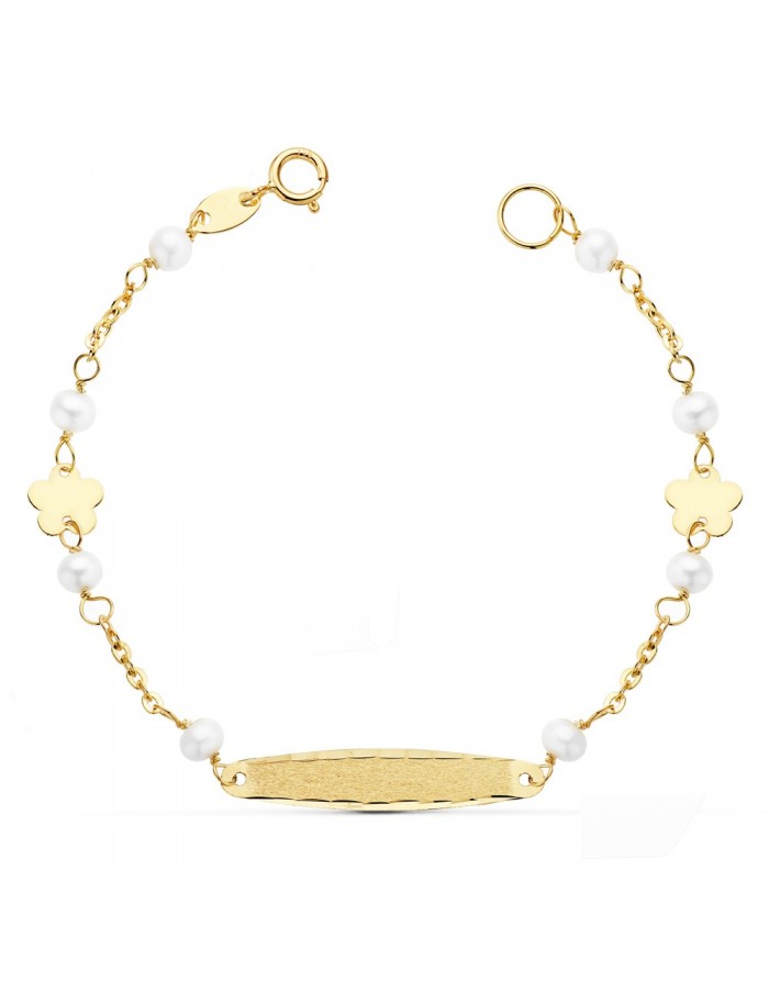 Girl's bracelet in 18kt gold with pearls and flowers 13,5cm