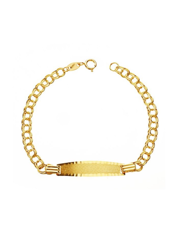 Baby bangle in 18K yellow gold with a glitter finish from the brand Joyas Armaan with a loop clasp. The length of the key is 13 cm and an approximate weight of 1,9 grs.
