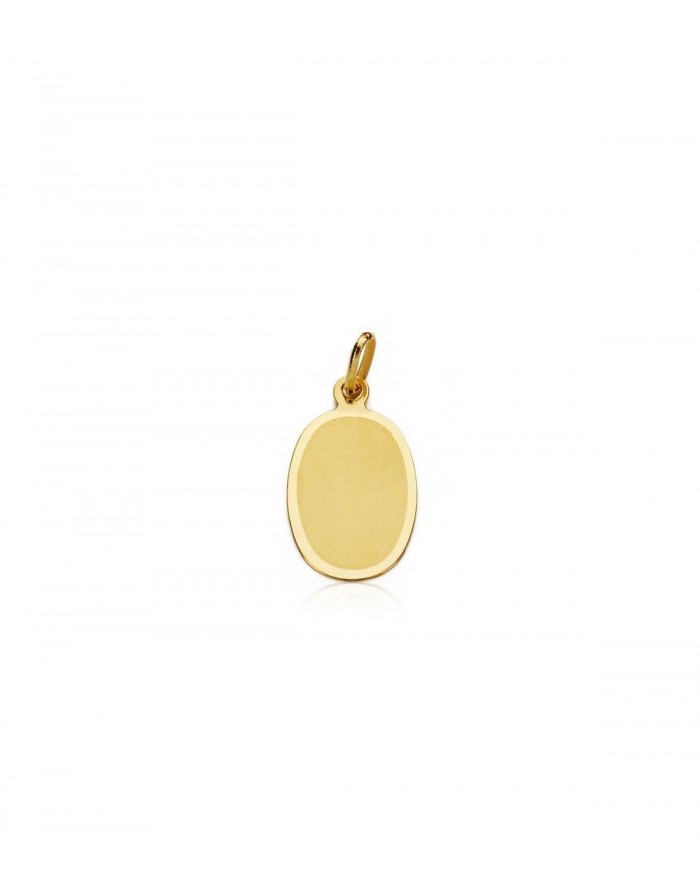 Oval shaped baby medallion made in18k Yellow Gold (750 mils) with a matte-gloss finish. The medal is 15mm high and 10mm wide.
