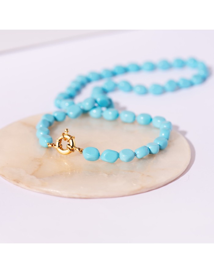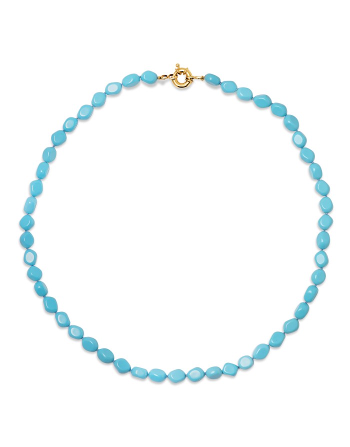 18K GARGANTILLA TURQUESAS LARGO: 45CM CIERRE DE TIMON 10MM ORO AMARILLO
