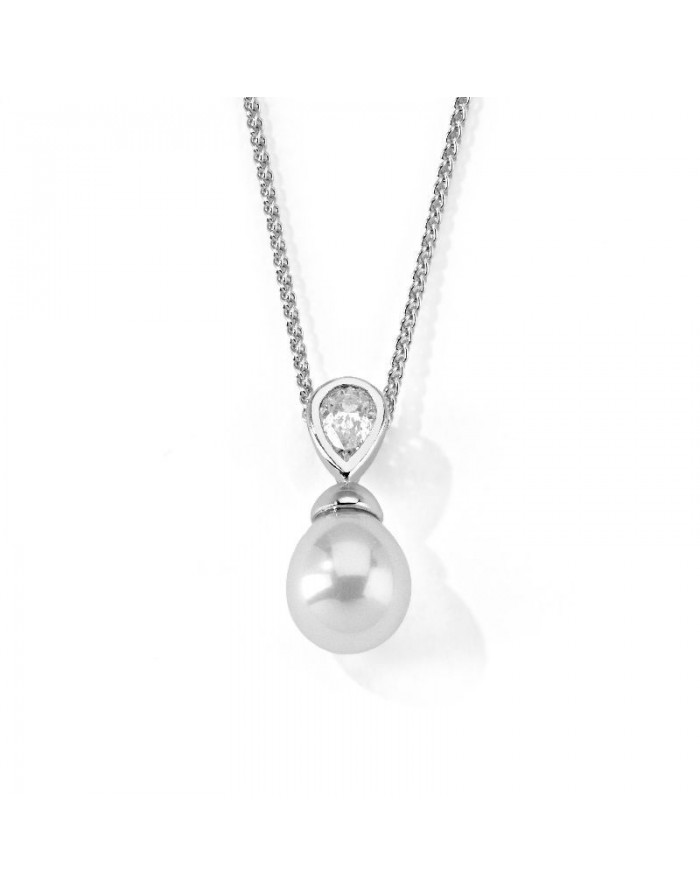 Sterling silver pearl choker by Majorica. This choker has a carabiner clas p and is 42/47 cm long. In addition, this piece of jewellery has a white teardrop-shaped pearl with a diameter of 10/12 mm. It is a choker designed especially for women.