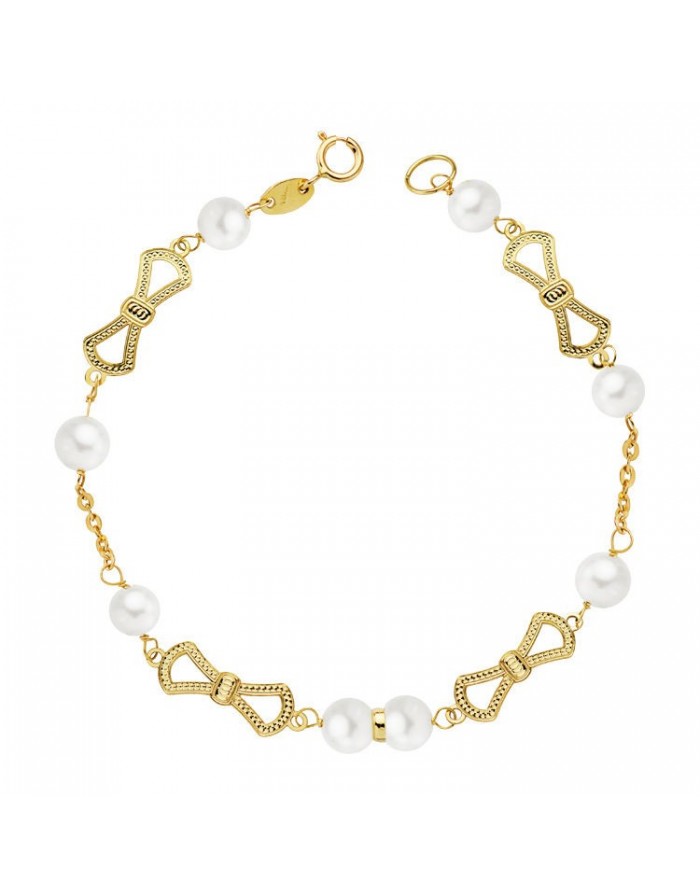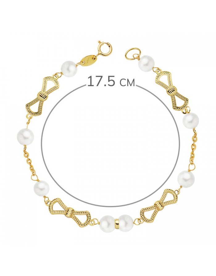 Girl's bracelet "Figuera" in 18kt gold with round white pearls 17,5cm