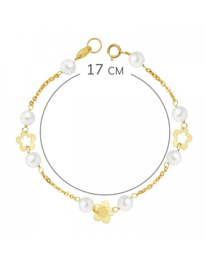 Bracelet 18kt Gold 1st Communion with pearls and openwork flowers 17cm