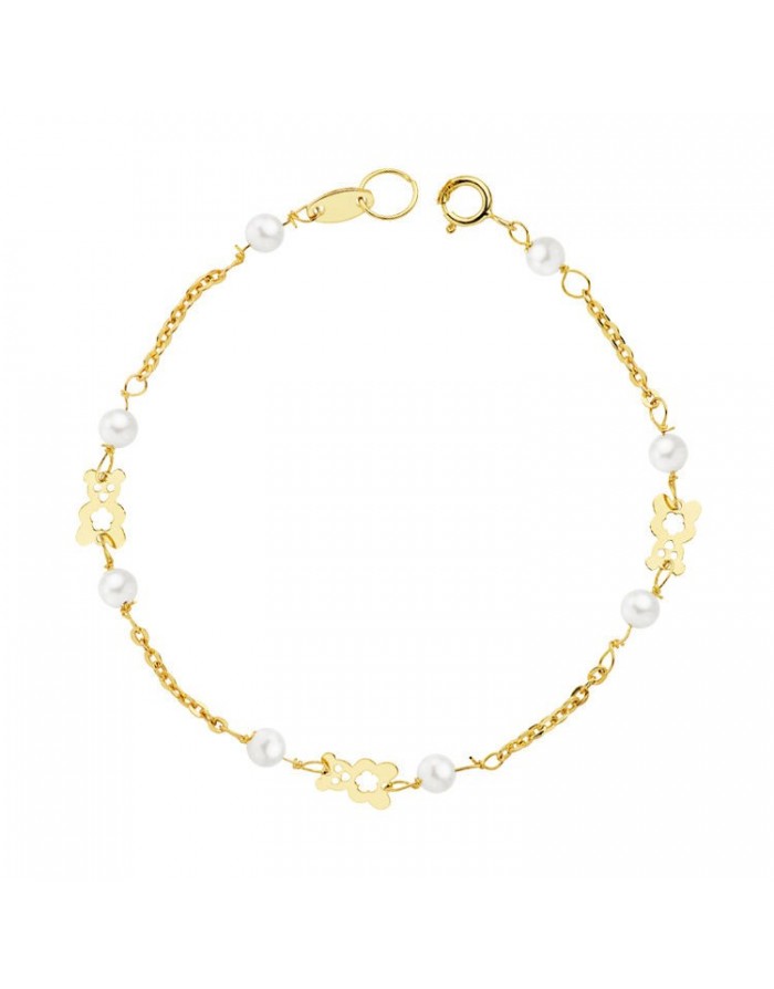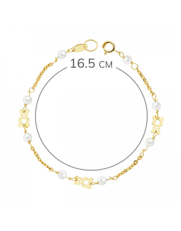 Girl's bracelet "Bassa" in 18kt Gold 1st Communion with pearls and openwork teddy bears - 16,5cm