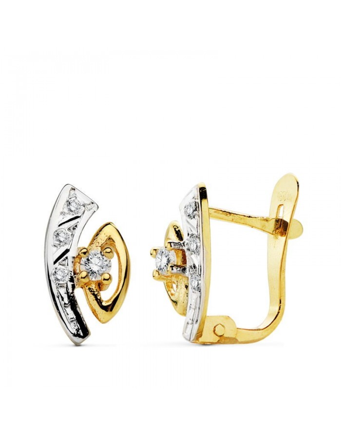 Earrings made in 18K Yellow Gold by Joyas Armaan with Catalan clasp. The stone of the earring is transparent zirconia.