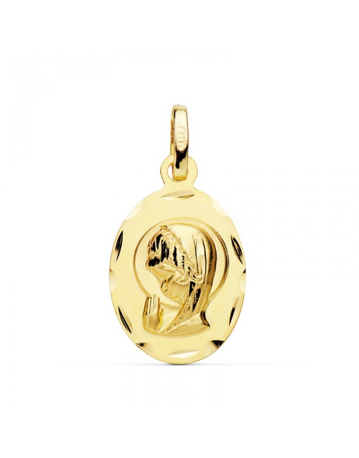 Medal Virgin Girl praying carved in 18Kt gold -19 x 12mm