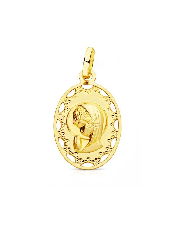 Oval Medal with Virgin Girl and openwork border in 18kt Gold 23 x 14mm