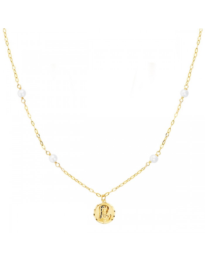 40cm 18kt gold choker with pearls and Virgin Girl Medal -18mmand Virgin Girl Medal -18mm