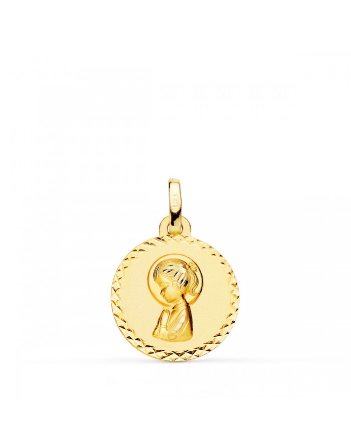 Virgin Girl Medal 18kt Gold 18kt carved cross 16mm