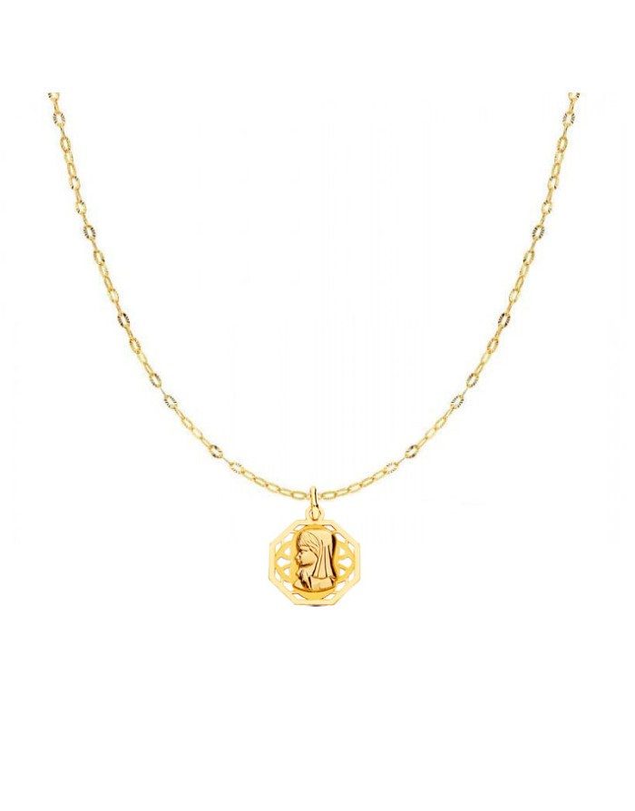 18kt Gold Girl's Octagonal Openwork Medal -17 x 15mm