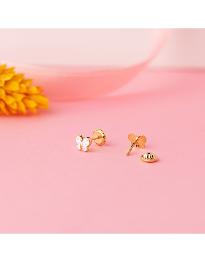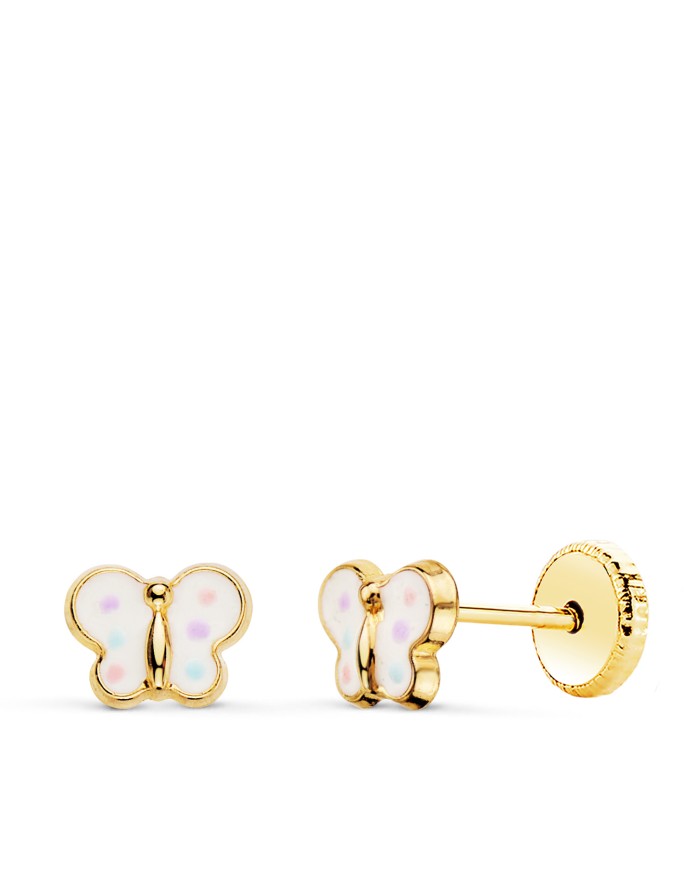 18K PENDIENTES ORO AMARILLO MARIPOSA ESMALTE 6 X 4,5 MM CIERRE TUERCA