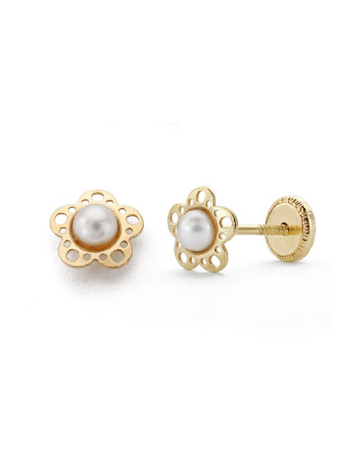 YELLOW GOLD EARRINGS GIRL FLOWER PEARLITE FLOWER NUT