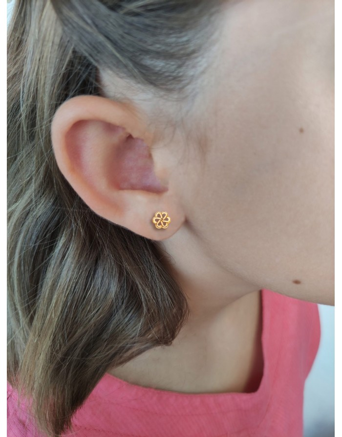Flower-shaped earrings made in 18K Yellow Gold with a Shine finish by Joyas Armaan with screw clasp.