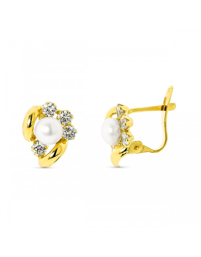 Clivia Pearl and Zirconia Earrings mounted in 18kt Gold