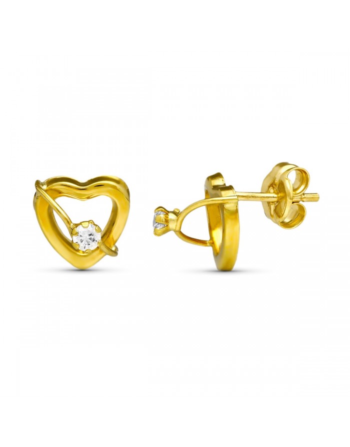 Girl Heart and Zirconia Earrings in 18kt Yellow Gold - 7 x 7mm