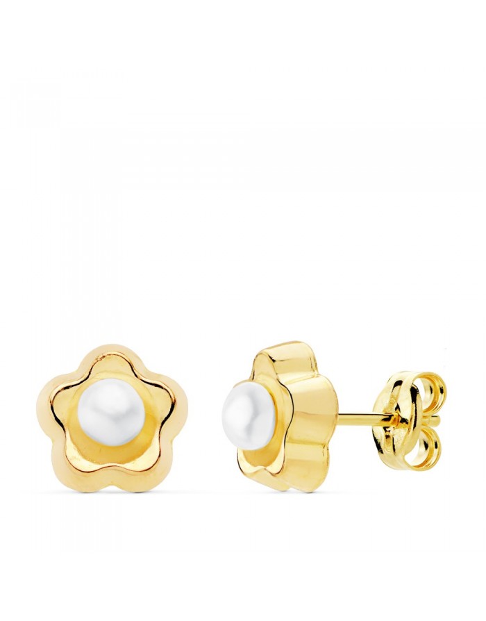 Flower-shaped earrings made in 18K Yellow Gold with a Shine finish by Joyas Armaan with a snap closure.