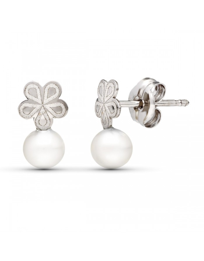 EARRINGS WHITE GOLD PEARL. 9 X 5 MM.