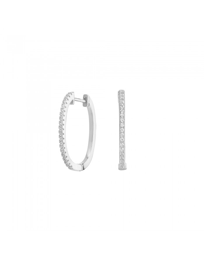 Earrings in the shape of a hoop made of sterling silver and rhodium finish by Itemporality with Huggy clasp. The stone of the earring is transparent zirconia.