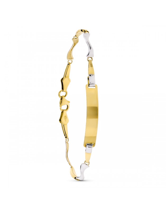 Women's bracelet in 18K yellow gold with bicolour finish from Joyas Armaan with carabiner clasp. The length of the bracelet is 18,5 cm and an approximate weight of 4,50 grs.