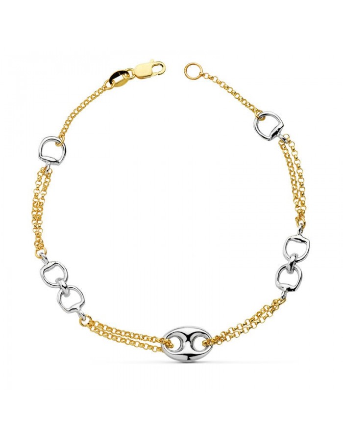 Bracelet with double chain and stirrups in 18Kt Yellow Gold and 18Kt White Gold