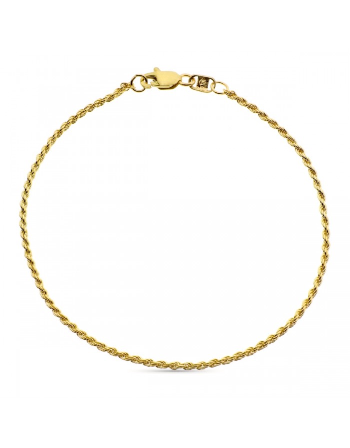 Bracelet cord for men and women in 18KT gold of the brand Joyas Armaan with carabiner clasp. The length is 20 cm and has an approximate weight of 3.15 grams. The calibre of its links is 1.5 mm.