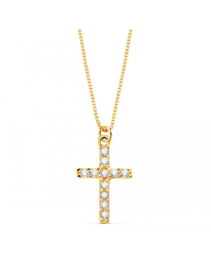 Necklace in 18Kt Gold Cross with Diamonds 0,09 Carats