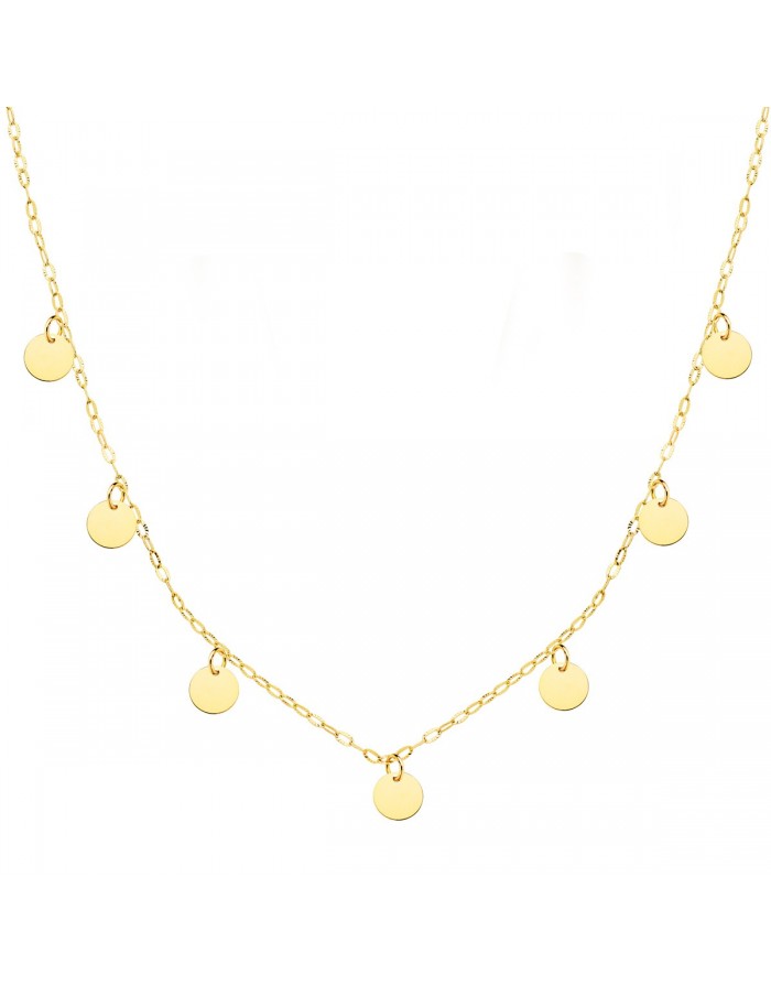 18K yellow gold choker in the shape of discs by Joyas Armaan. This choker has a 40 cm long and has a locking ring clasp. It is a choker designed especially for women.