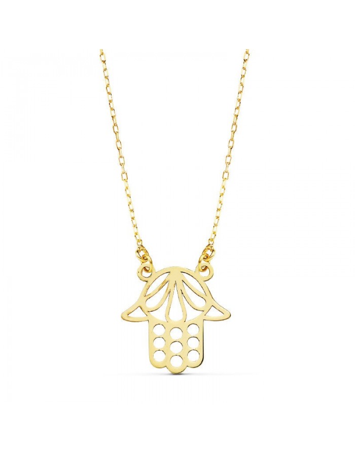 18K yellow gold choker in the shape of a fatima's hand from Joyas Armaan. This choker has a 45 cm long and has a loop clasp. It is a choker designed especially for women.